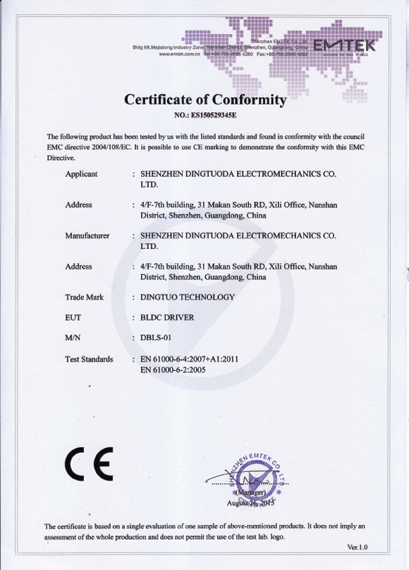 無(wú)刷驅(qū)動(dòng)器CE認(rèn)證證書(shū)